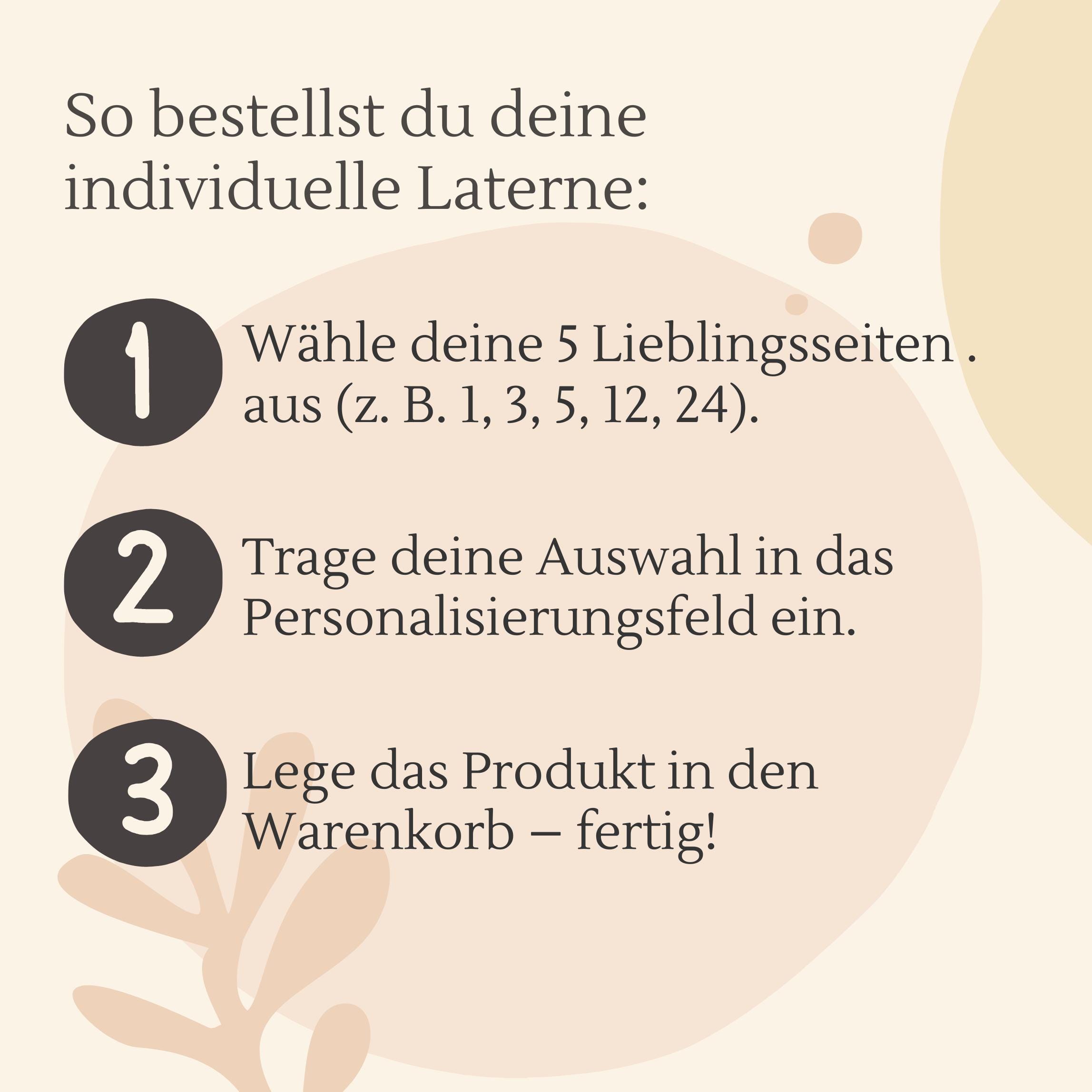 2. Trage deine Auswahl in das Personalisierungsfeld ein (z.B. 1, 2, 5, 12, 24).