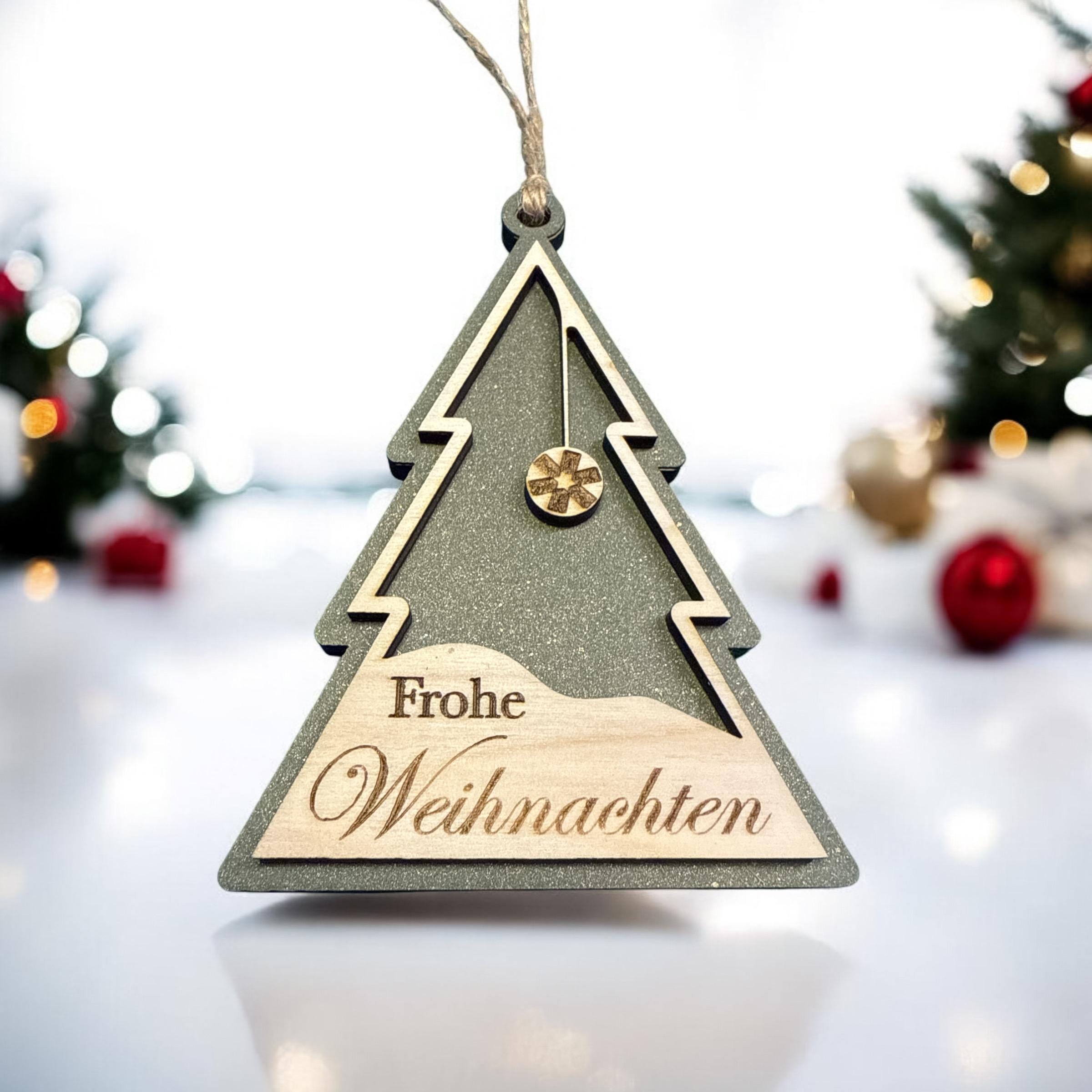 Feiere die festliche Jahreszeit mit unserem einzigartigen Weihnachtsschmuck „Frohe Weihnachten“ – handgefertigt aus natürlichem Holz und recyceltem Papier. Diese einzigartige Weihnachtsdekoration bringt Wärme und Freude in dein Zuhause und ist das perfekte Geschenk für deine Liebsten, Freunde oder als besonderes Detail für deinen eigenen Christbaum.